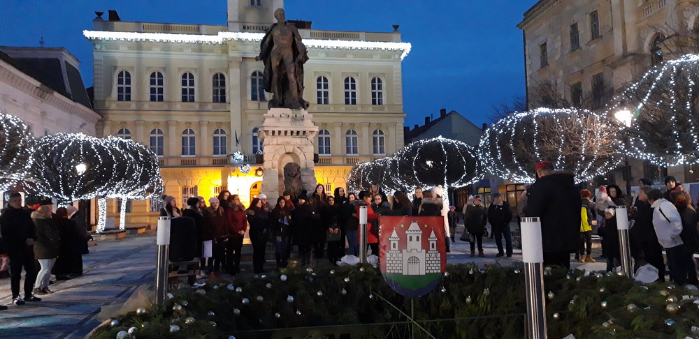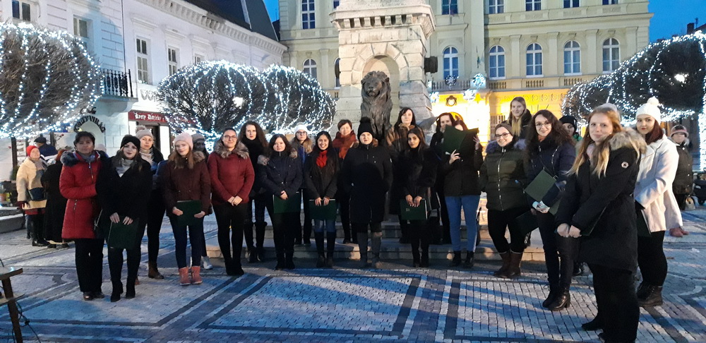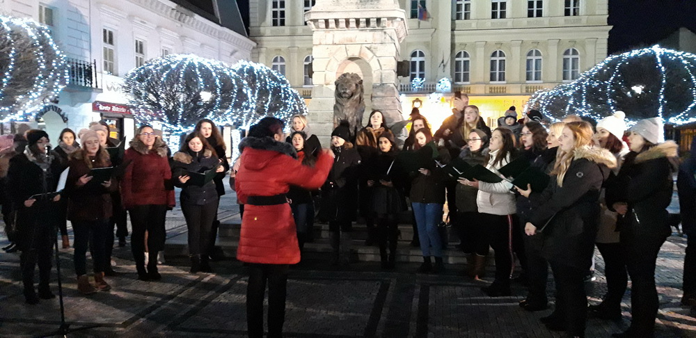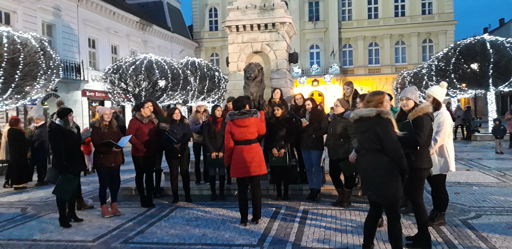2019.12.01. Advent első vasárnapján Komáromban, a Klapka téren felgyulladt az első adventi gyertya a város adventi koszorúján. Az egyházak képviselőinek szívmelengető áldását követően egyetemünk kórusa a Cantus Iuventus adventi és karácsonyi énekeket adott elő, majd a jelenlévőket is bevonva közösen énekeltek ismert karácsonyi dallamokat.
