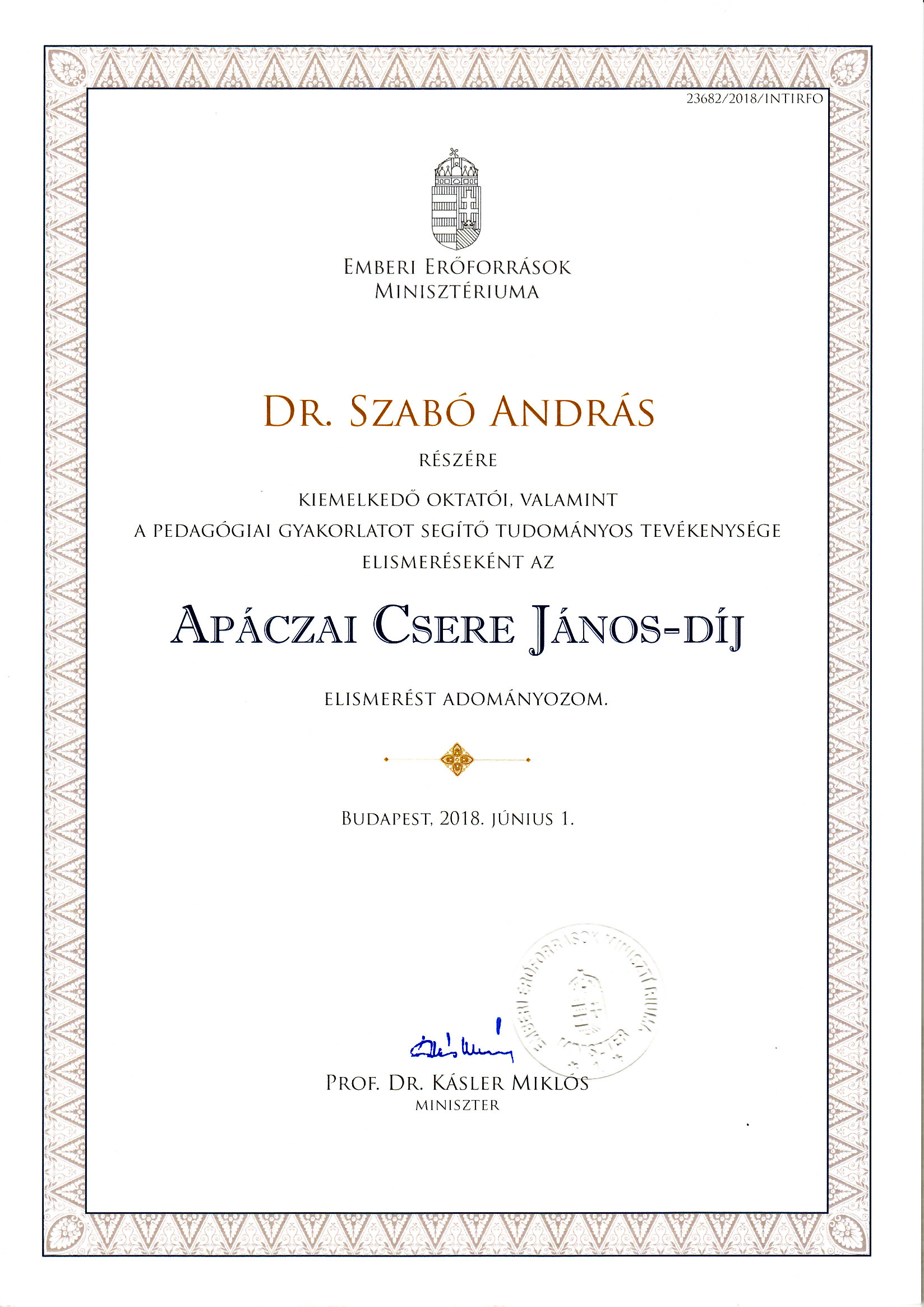 A 2025-ös évben egyetemünk oktatója, Baka L. Patrik tanár úr vehette át a Magyar Tudományos Akadémia Arany János Fiatal Kutatói Díját.