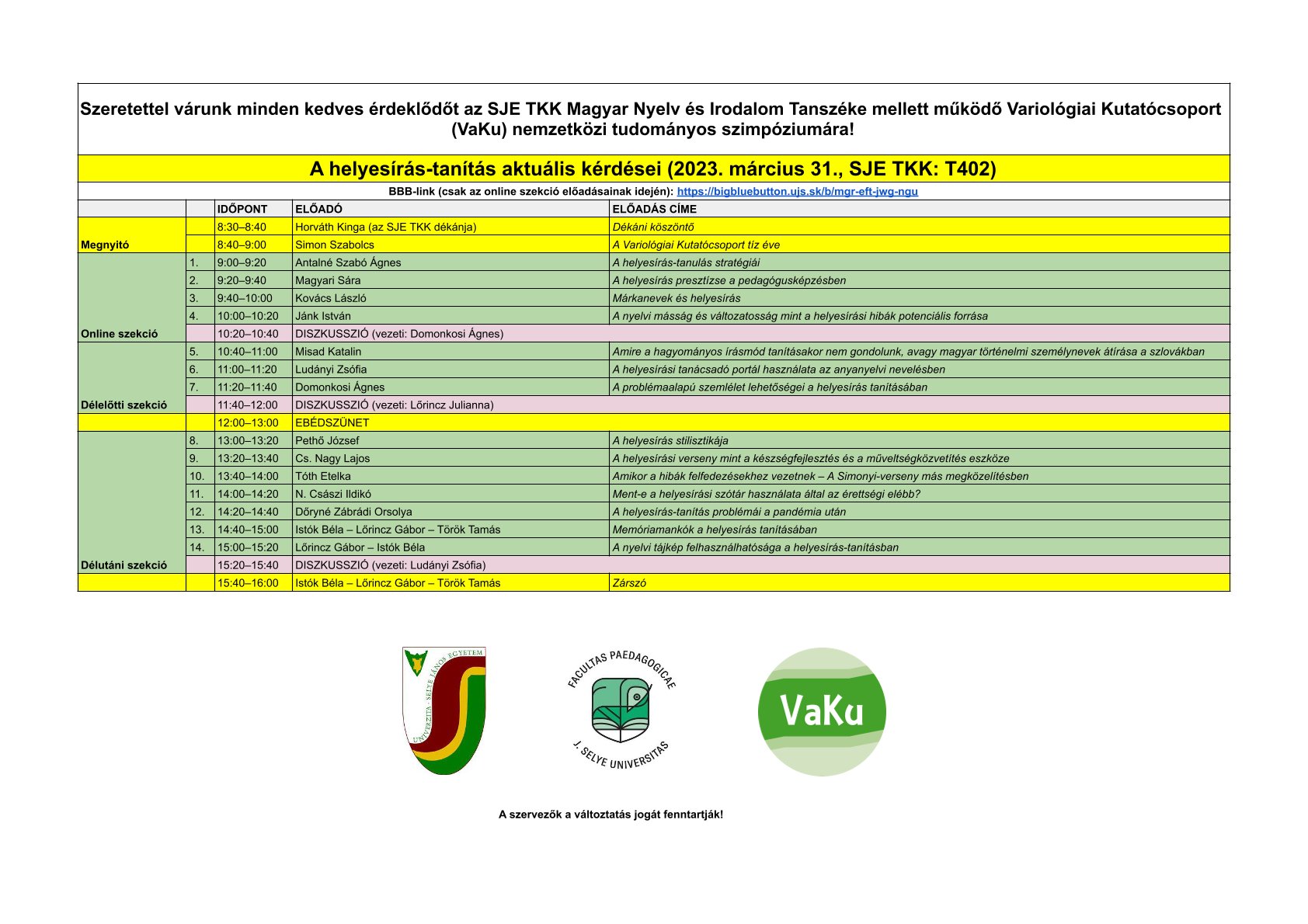 Szervező: SJE TKK Magyar Nyelv és Irodalom Tanszék