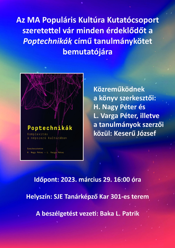 A rendezvény neve: MA Populáris Kultúra Kutatócsoport 3. szimpóziuma