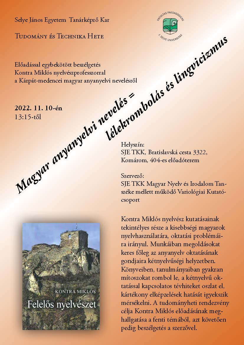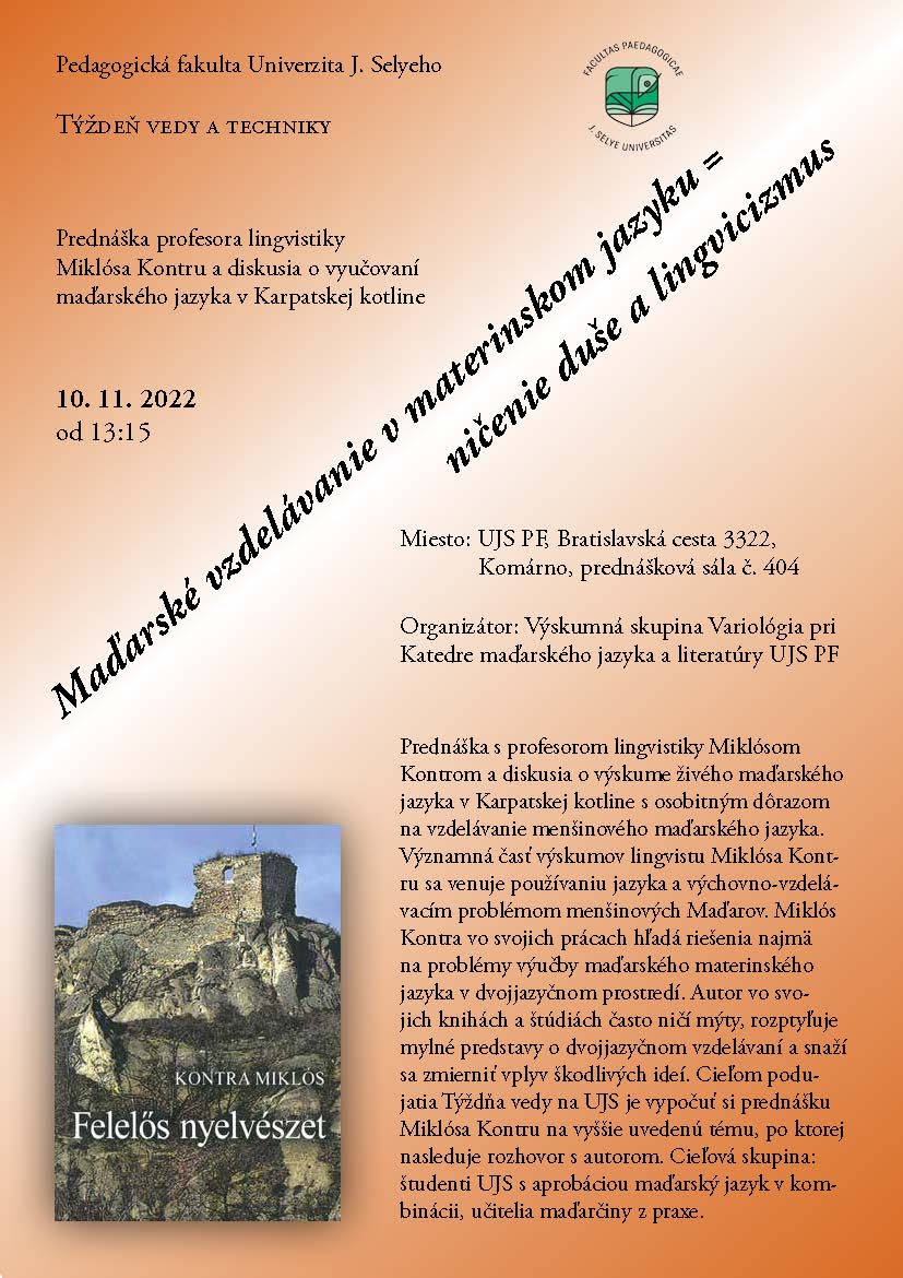 Elérhetőség: SJE Tanárképző Kar, Bratislavská 3322, 94501 Komárno