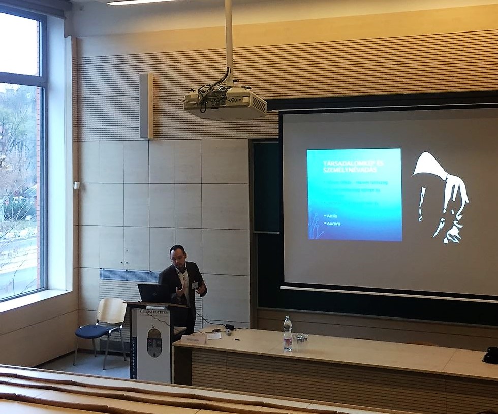 2017. 04. 28-án a Szegedi Tudományegyetem Bölcsészettudományi Karán immáron negyedik alkalommal került megrendezésre az Újdonságok a szemantikai és pragmatikai kutatásokban című konferencia. A tanácskozást Németh T. Enikő, a SZTE BTK Általános Nyelvészeti Tanszékének munkatársa és a Jelentés és nyelvhasználat című folyóirat társszerkesztője, valamint Dr. Vajda Zoltán, a SZTE BTK tudományos és nemzetközi ügyekért felelős dékánhelyettese nyitotta meg. A 22 előadó a Magyar Tudományos Akadémia, illetve annak Nyelvtudományi Intézete, a Debreceni Egyetem, a Szegedi Tudományegyetem, a Pécsi Tudományegyetem, a Budapesti Műszaki Egyetem, az Eötvös Lóránd Tudományegyetem és a Selye János Egyetem képviseletében érkezett. Az elhangzott előadások többek között a grammatikalizációs jelentésváltozás, a meggyőzés, a manipuláció, az irónia, a hát diskurzusjelölő, az ugye partikula, a névelőhasználat, az igei jelentés metaforizációja, valamint a kicsinyítés és a nevetés pragmatikai kérdéskörét vitatták meg. Egyetemünket Szerdi Ilona, a Magyar Nyelv és Irodalom Doktori Iskola hallgatója képviselte A lexikális jelentésviszonyok tanítása multimediális szövegekkel című előadásával.