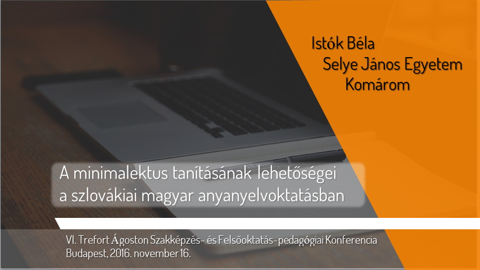 Istók Béla A minimalektus tanításának lehetőségei a szlovákiai magyar anyanyelvoktatásban című előadását a Kompetenciafejlesztés és –mérés című szekcióban tartotta meg.