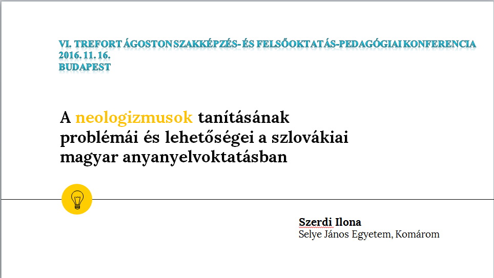 Szerdi Ilona: A neologizmusok tanításának problémái és lehetőségei a szlovákiai magyar anyanyelvoktatásban