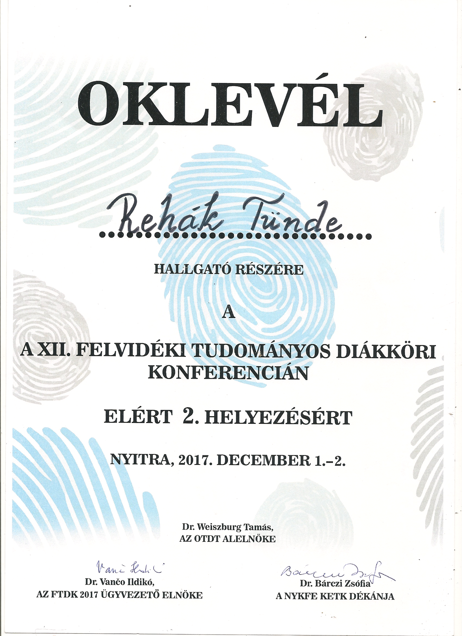 II. miesto: Tünde Rehák (Pedagogická fakulta UJS, 3. roč., PPdb)