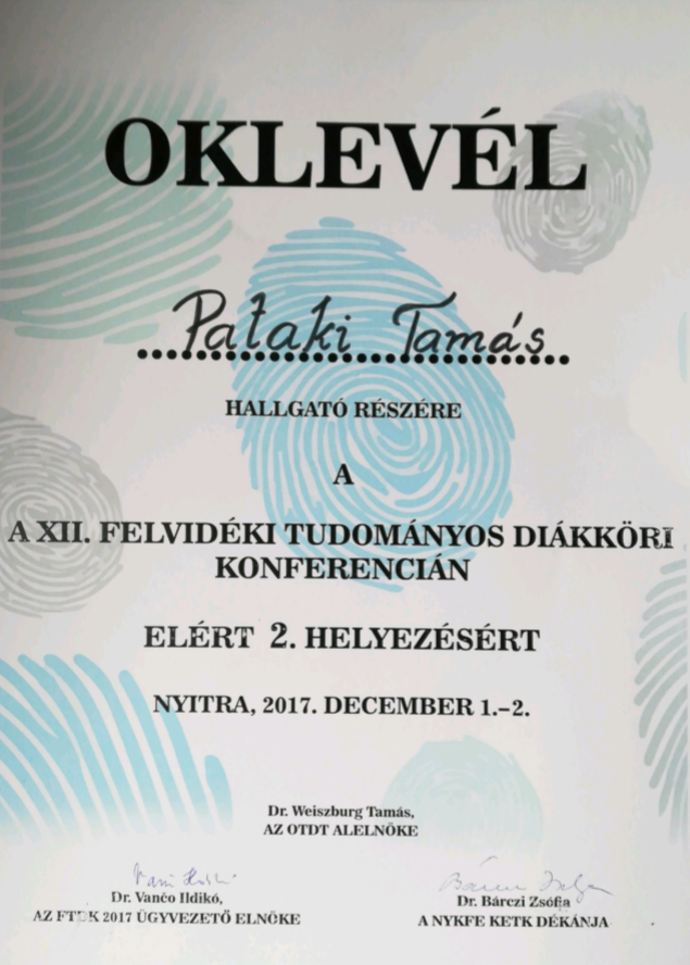 II. miesto: Tamás Pataki (Pedagogická fakulta UJS, K-HIdm, absolvent )