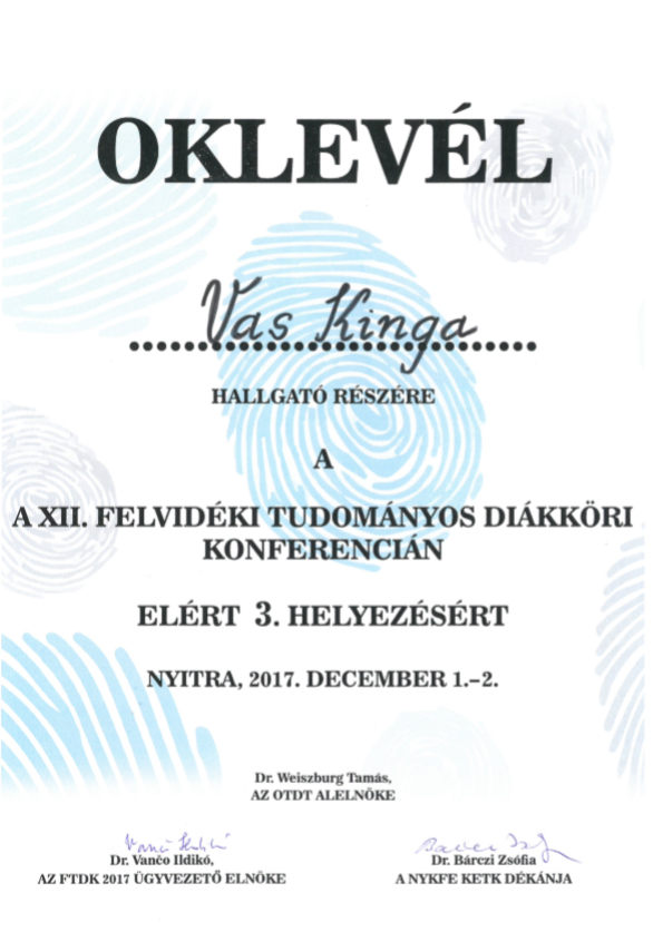 III. miesto: Kinga Vas (Pedagogická fakulta UJS, 1. roč., B-AJdm)